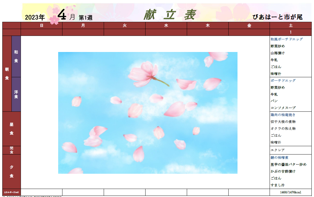 4月の行事予定表と献立表