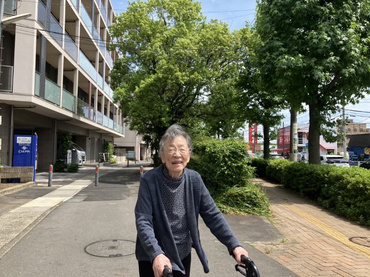「ホーム内の床は絨毯敷きだから歩きやすいけれど、外に出ると全く違うわね。いい運動になるわ」