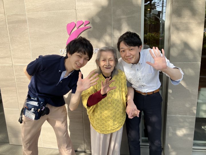 ご入居者の皆さまにも、季節の移ろいを感じていただこうと、ホーム近くを流れる鶴見川を眺めに行ったり、駅前のスーパーやパン屋さんまで、リハビリを兼ねたお散歩に行ったりと、積極的に外出の機会を設けています。