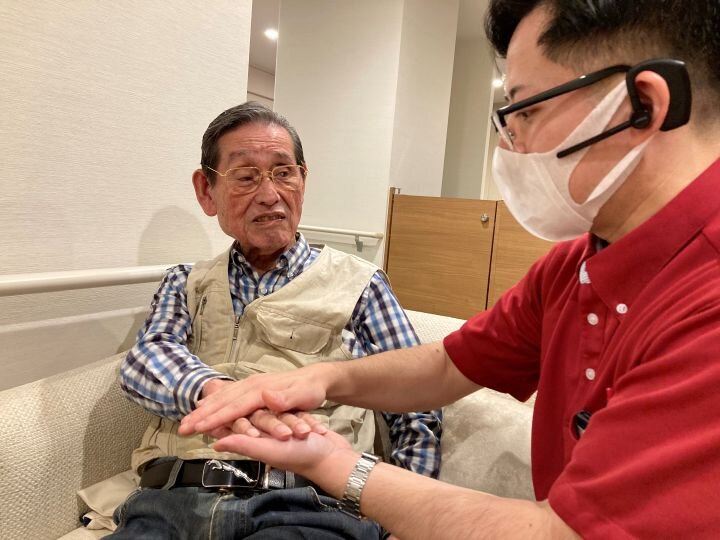 Sライフマネージャーによる施術を受けられたご入居者の表情は、次第にやわらぎ、穏やかな笑顔に包まれていました。