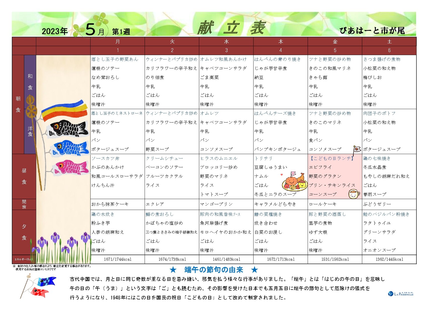 5月の行事予定表と献立表
