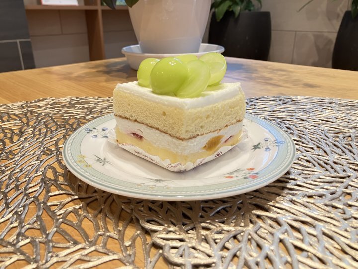 おやつには、山梨県産シャインマスカットを贅沢に飾った季節限定のケーキをご用意。