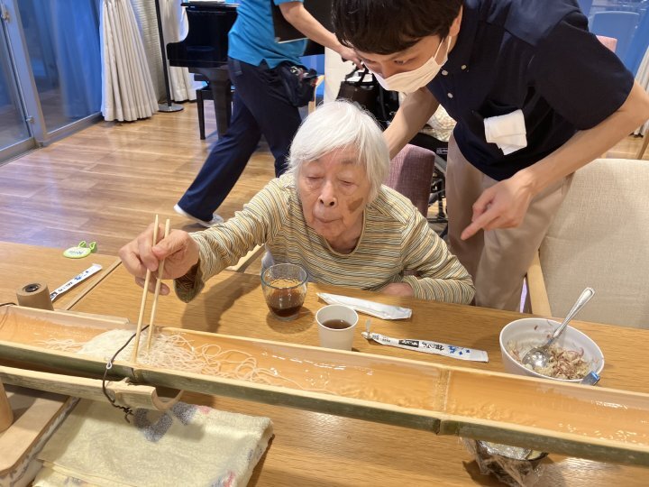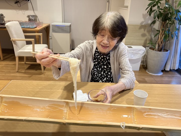 真夏の青空がまぶしいある日、当ホームでは毎年恒例の『流しそうめん』を開催いたしました。