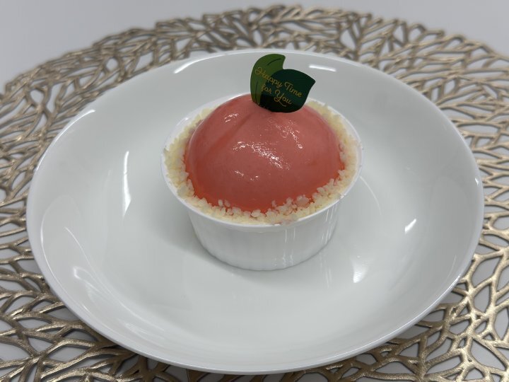 おやつには、“まんまる白桃ケーキ”をご用意しました。