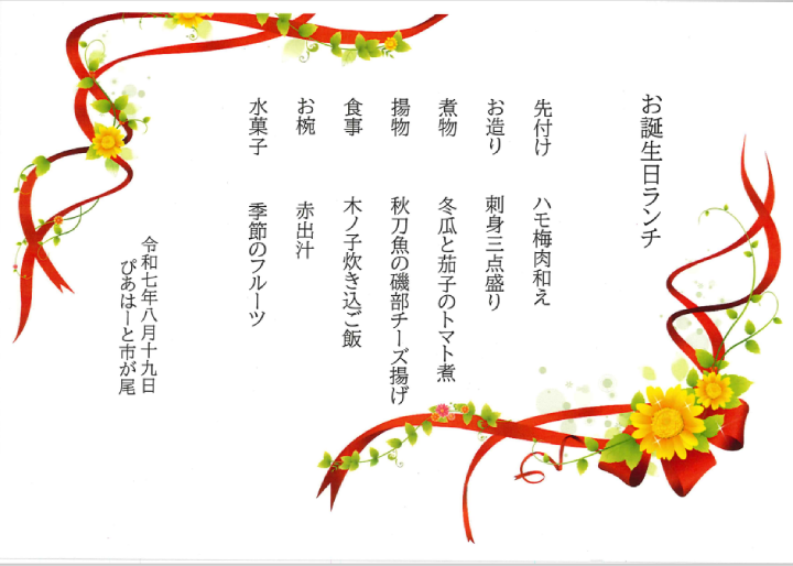 来月もまた、楽しんでいただけるような献立をご用意いたします。