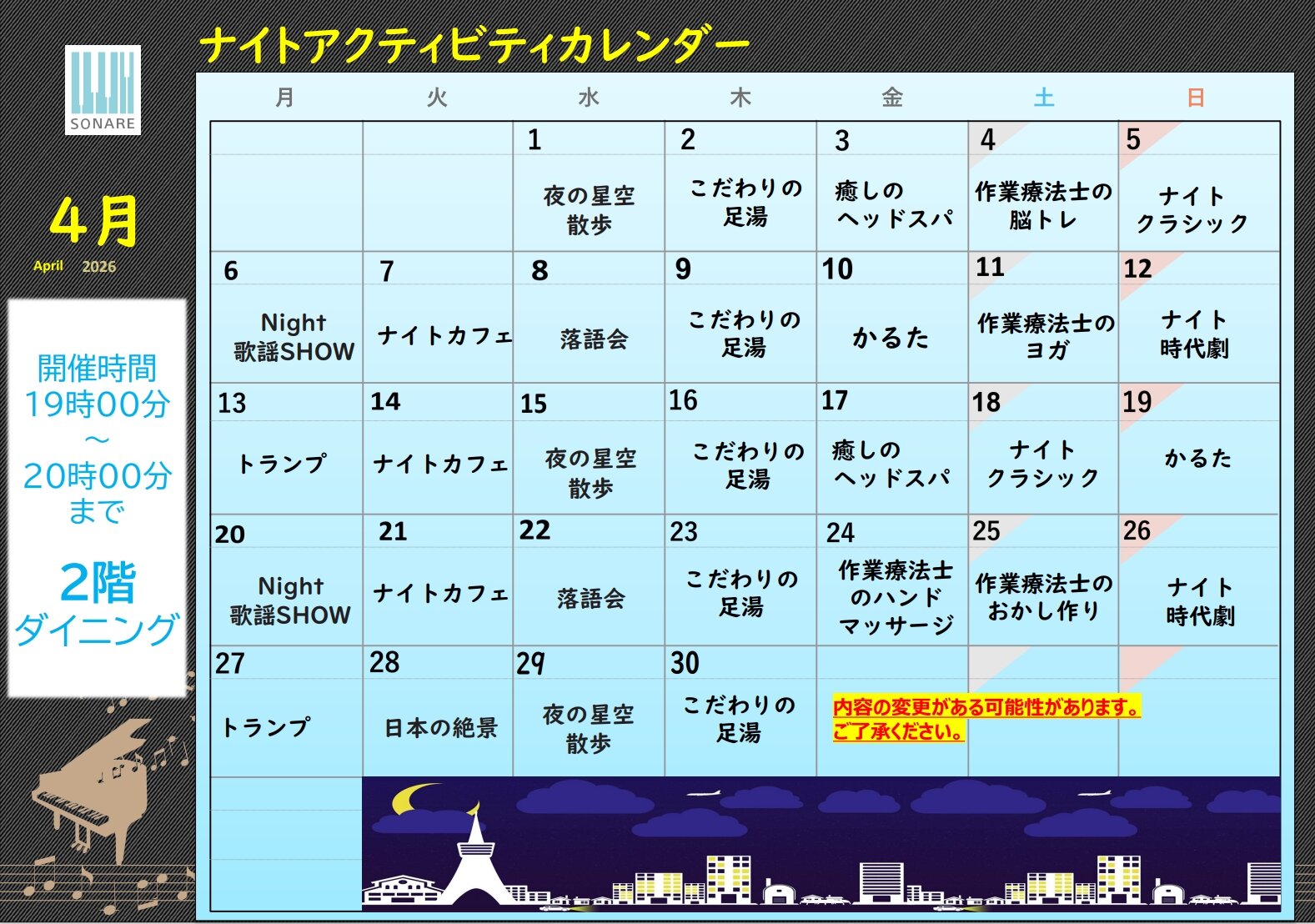 また、ナイトアクティビティでは、作業療法士によるお菓子作りや、人気のナイトヨガも実施いたします。