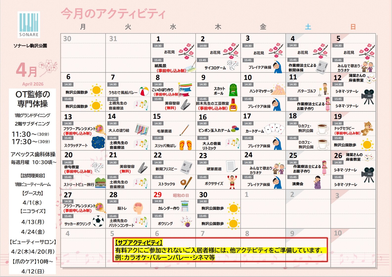 今回は、4月の『アクティビティ』と『献立』についてご案内いたします。