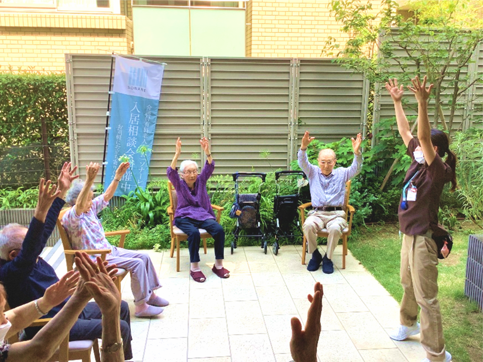鳥の声や風の音を感じながら、しばしの休息を楽しまれるご入居者の姿もみられます。