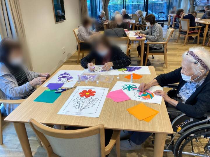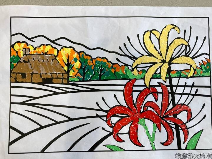 当ホームでは、11月17日からのホーム内展覧会に向けて、9月より作業療法士が主催するちぎり絵作成に取り組んでまいりました。