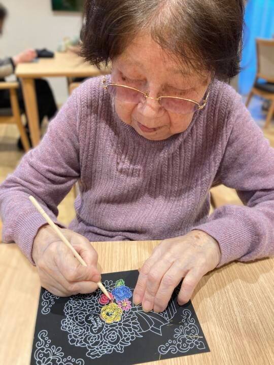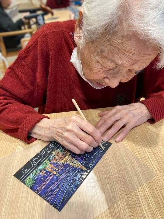 今回は、作業療法士主催のアクティビティ「スクラッチアート」の様子をご紹介いたします。