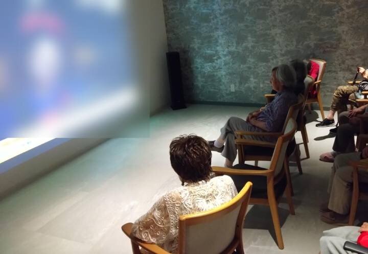 ご入居者はスクリーンに見入ったり、お隣の方と感想を語り合ったりと、それぞれのペースで“旅”を楽しまれました。