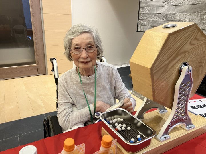 金色の玉が出ると「やった!孫に見せたい!」と喜ばれ、参加賞の白色の玉でも「こういうのが楽しいんだよ」と嬉しそうにされる方も。