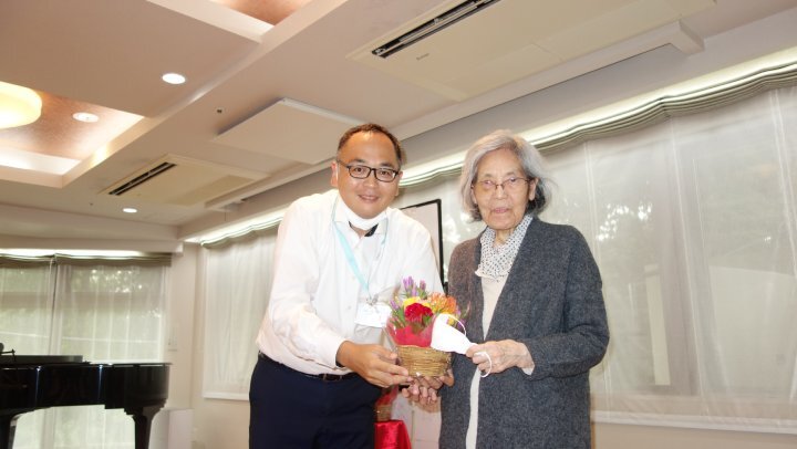 ホーム長と副ホーム長からの祝辞と花束贈呈に続き、「おめでとうございます!」の拍手が会場いっぱいに広がりました。