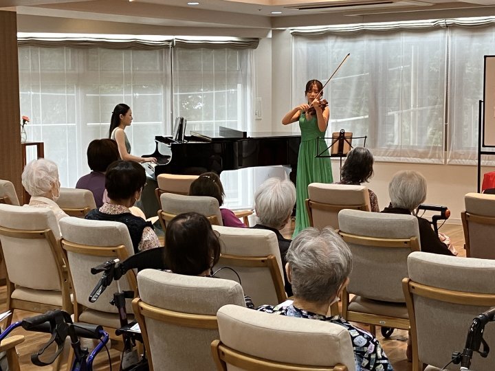 ピアノとヴァイオリン、そして声楽が織りなす優雅な音色が会場を包み込み、目を閉じて静かに聴き入る方、リズムに合わせて身体を揺らす方、知っている曲を口ずさむ方など、皆さまそれぞれのスタイルで音楽を楽しまれていました。