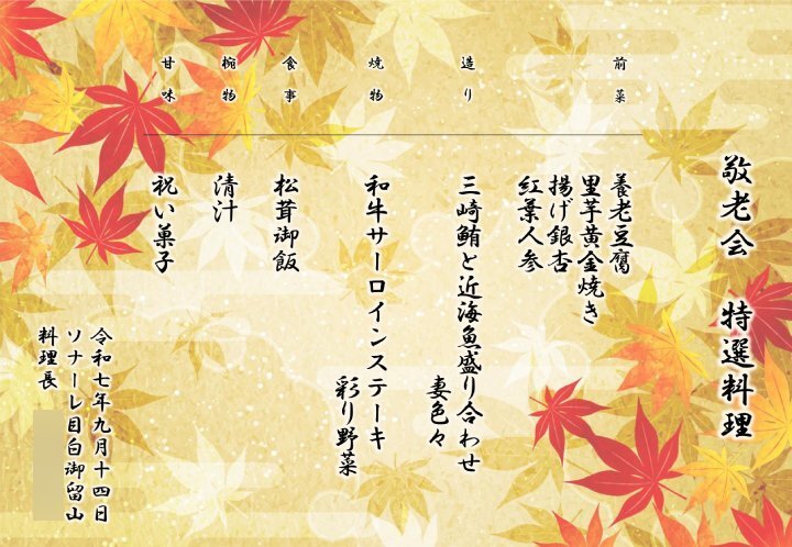 敬老会 vol.1 ~秋の味覚を愉しむ『敬老会 特選料理』~