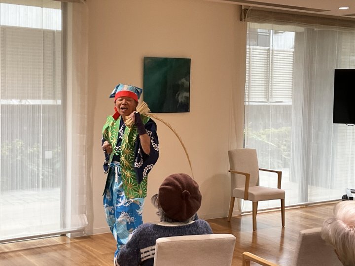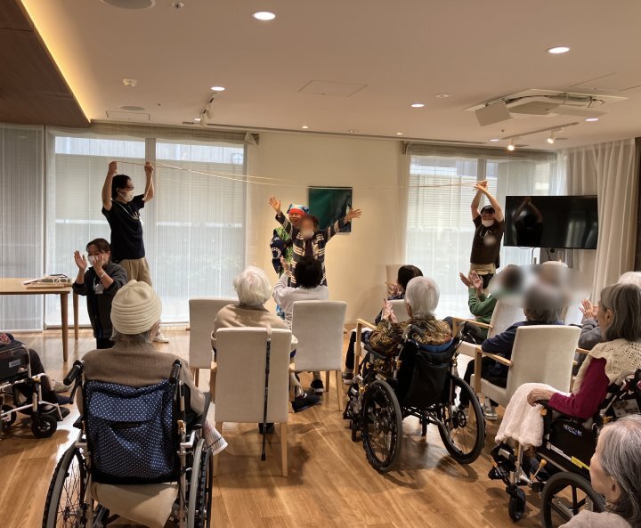 の一節では、ひときわ大きな拍手が起こり、普段は感情をあまり表に出されないご入居者が、涙を浮かべながら手を叩いていらした姿が印象的でした。
