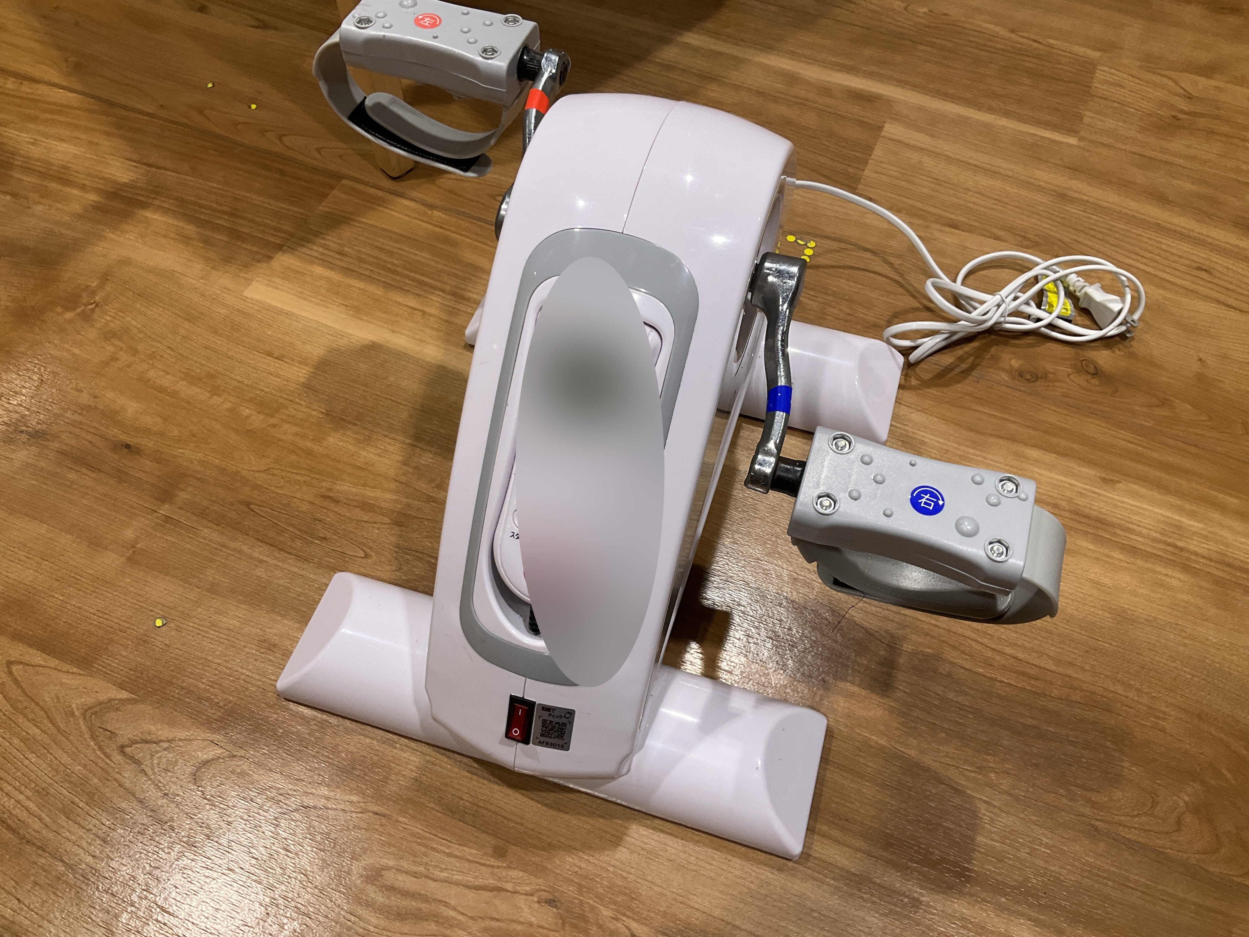 上の写真は、軽い負荷で筋力の維持・向上が期待できるペダル漕ぎマシン。