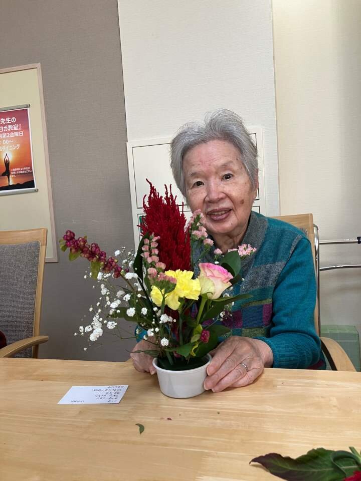 当ホームで恒例のアクティビティ『フラワーアレンジメント』。