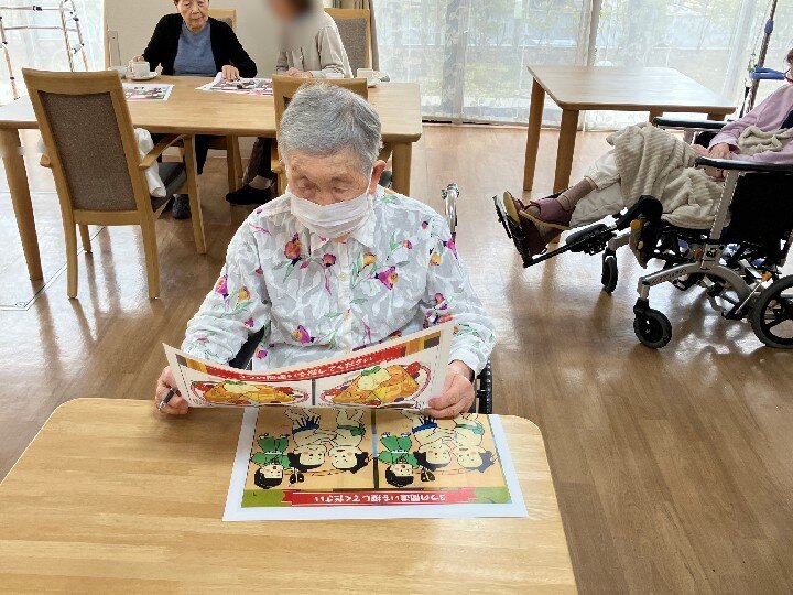 2つの絵を見比べながら、異なる部分を3か所見つけるもので、定期的に実施しているアクティビティの中でも、特にご好評をいただいています。