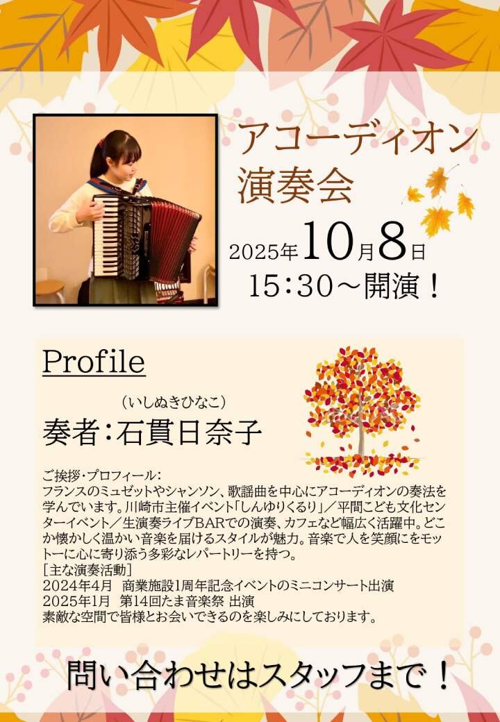 アコーディオンの音色が、秋の午後に優しく寄り添うひと時となりました。