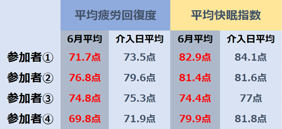 参加者・非参加者の各1例のみのご紹介ですが、ほかの方のデータでも似た傾向が確認されています。