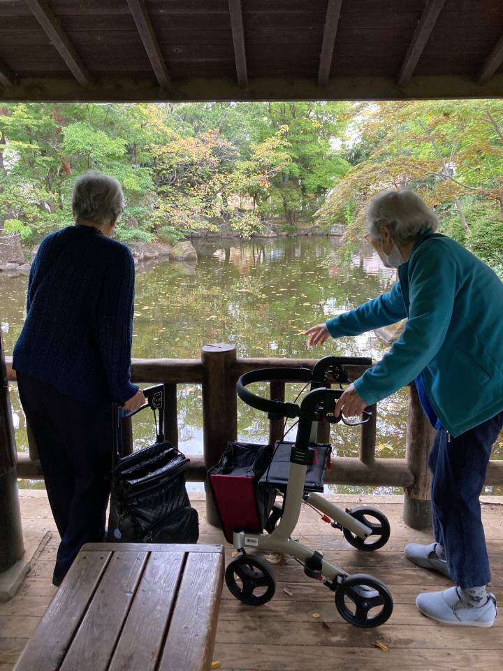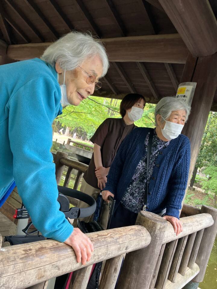 そこで今回は、当ホーム近隣の井草森公園へお出かけされた、お二人のご入居者の様子をご紹介いたします。