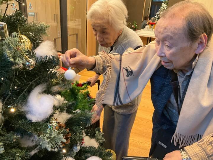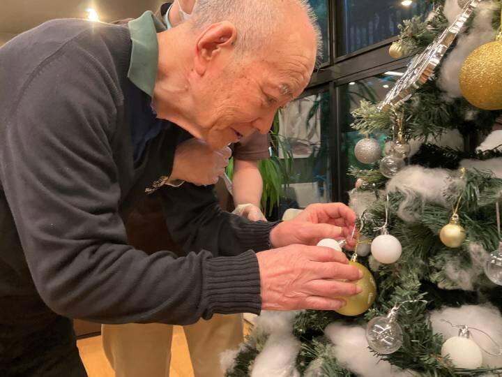 当ホームでは先日、エントランスホールにクリスマスツリーを飾るアクティビティを行いました。