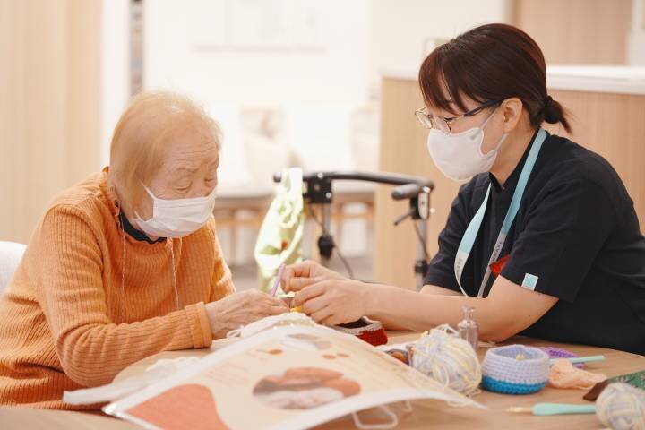 編み物がお好きな皆さまが集まり、ゆったりとした時間を楽しむ人気のアクティビティ
