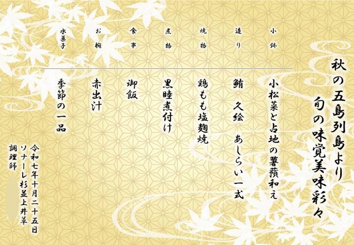 今回のブランドメニュー第4弾では、五島列島から届いた旬の味覚を詰め込んだ『秋の五島列島より 旬の味覚美味彩々』をご用意しました。