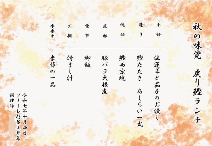 10月ブランドメニューのご紹介(1)~秋の味覚 戻り鰹ランチ~