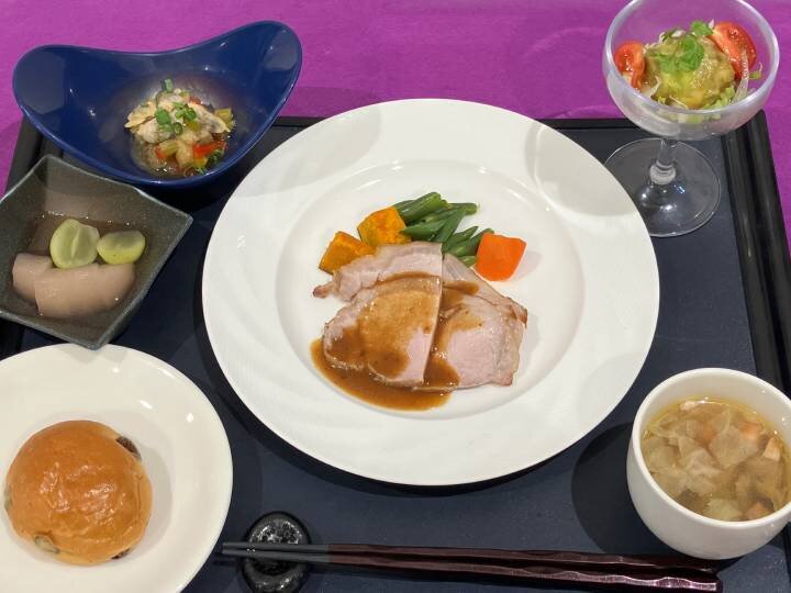 今回のブランドメニュー第4弾では、『彩り黒豚料理』と題し、ローストポークをメインにご用意いたしました。