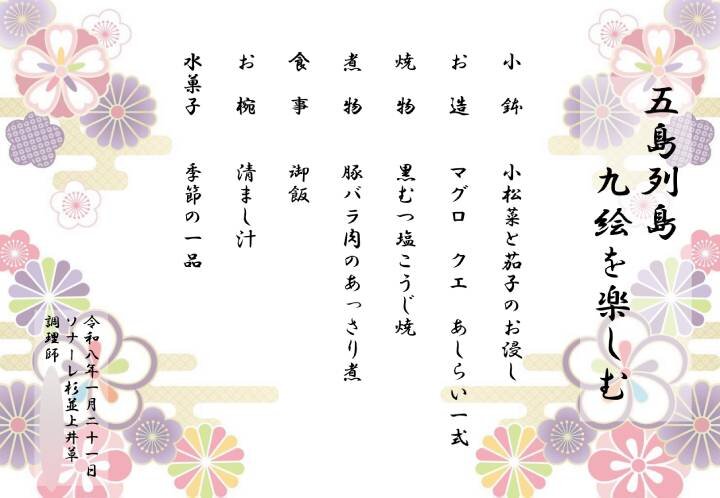 1月ブランドメニューのご紹介(3)~五島列島 九絵を楽しむ~