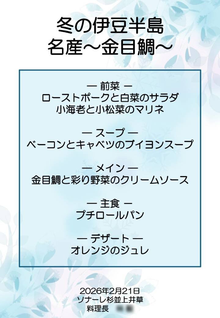 2月ブランドメニューのご紹介(3)~冬の伊豆半島名産 金目鯛~