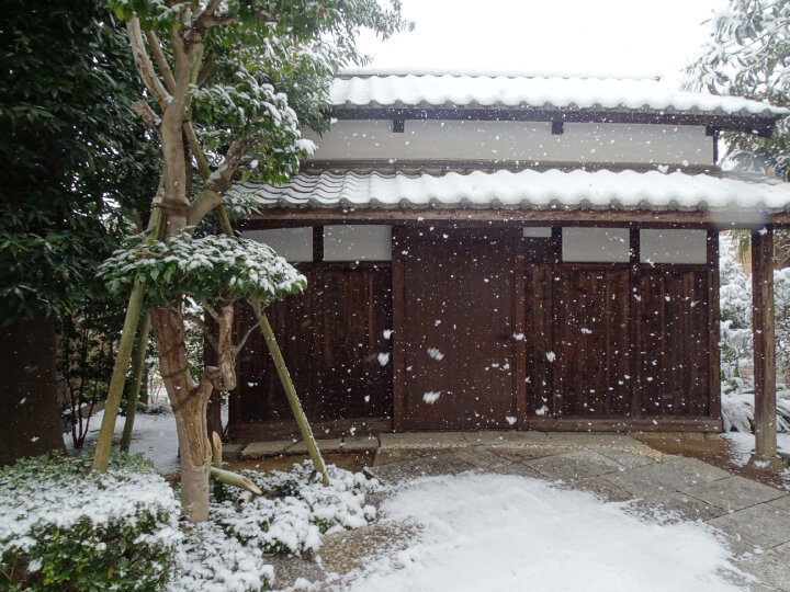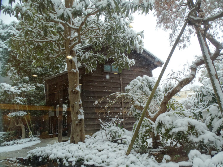 白く雪をまとった木々の間に、もともと敷地内にある蔵や社が浮かび上がり、普段見慣れているはずの景色が、全く別の表情を見せてくれました。