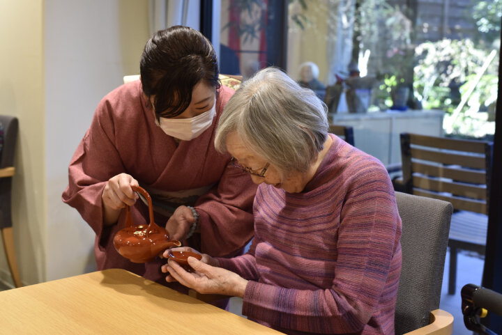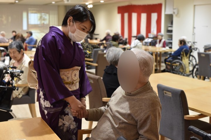 当日はホーム長とスタッフが着物を装い、新春らしい華やかな雰囲気の中でお祝いのひとときをお過ごしいただきました。