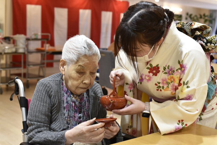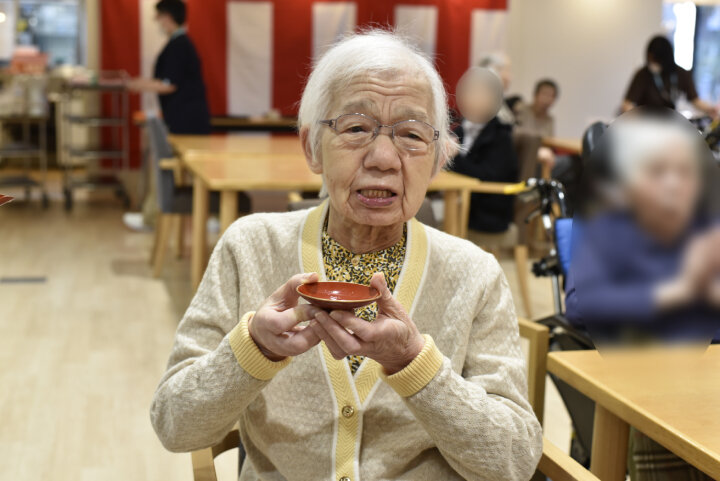さて、当ホームでは元日、新年の始まりにあたり、無病息災を願ってお屠蘇をお振舞いたしました。
