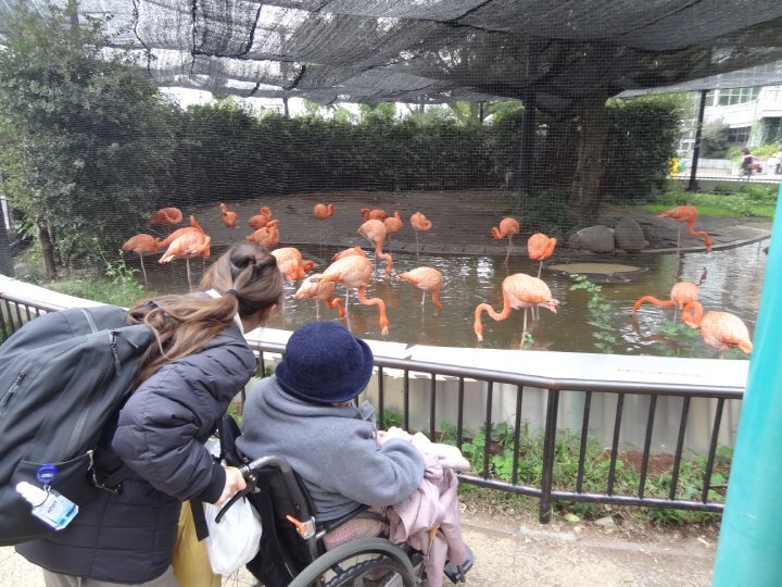 動物園に到着すると、艶やかな色合いのフラミンゴや大きなゾウ、優雅に首を伸ばすキリンなど、たくさんの動物たちがお出迎え。