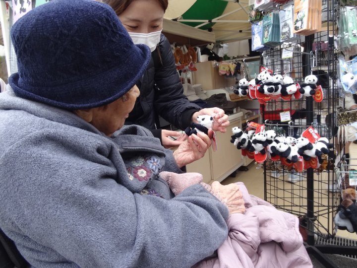お土産屋さんでは、パンダのキーホルダーを手に取り、「これにしよう」と嬉しそうに選ばれる姿も見られました。
