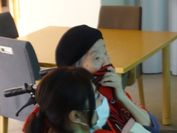 最近はあまり表情の変化がみられなかったI様ですが、その表情や身振りからは、かつてスタジアムで応援されていたころの記憶が、自然とよみがえっているように感じられました。