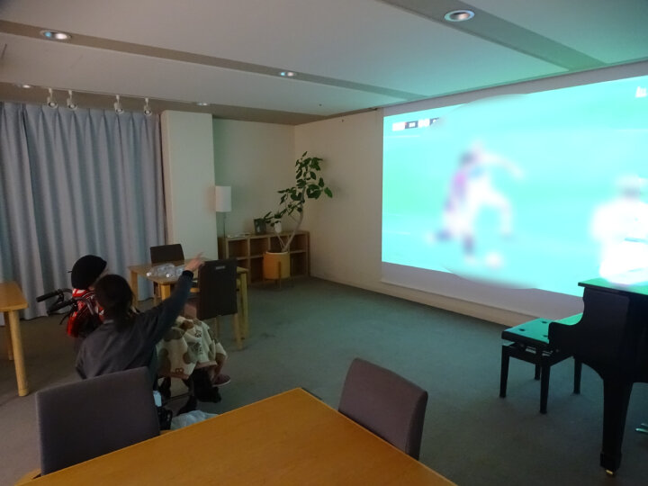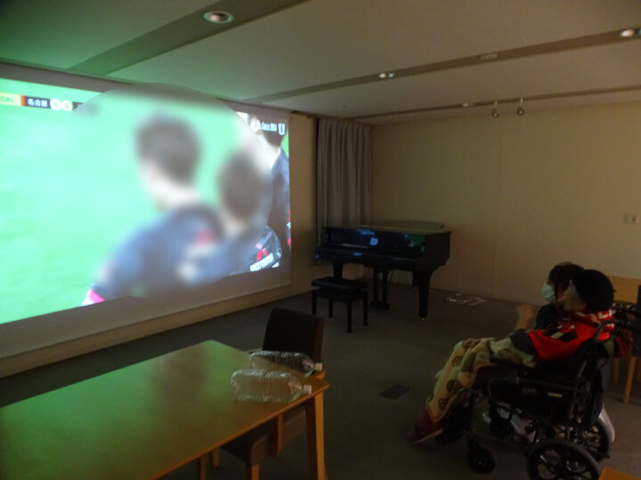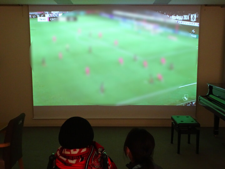 そこで今回、“Life Focus”の一環として、ホームのグランドダイニングに設置されているプロジェクターを使い、大型スクリーンでのサッカー観戦を企画しました。