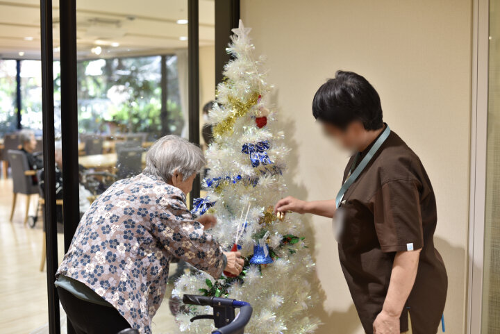 街が少しずつクリスマスムードに包まれる中、当ホームでも24日の「クリスマス会」に向けた準備が始まりました。
