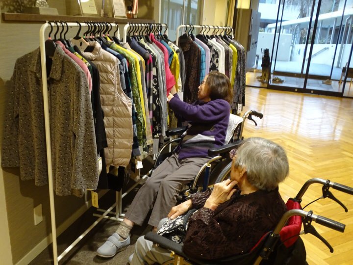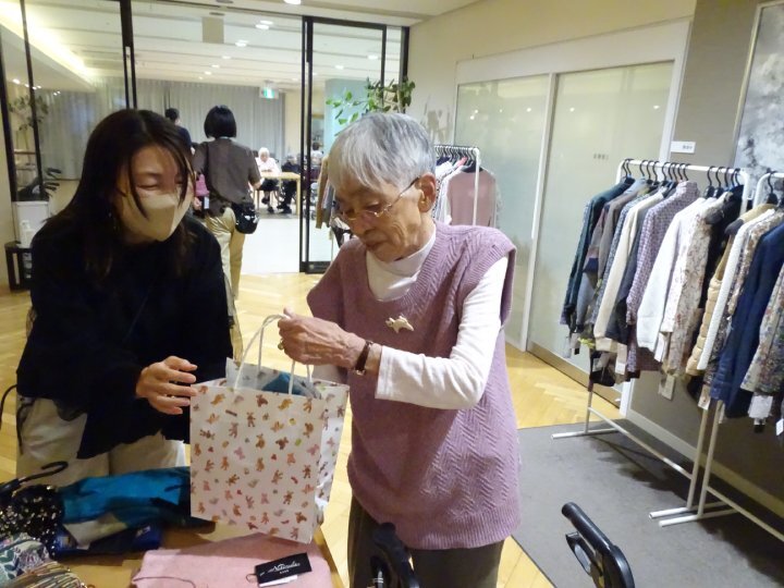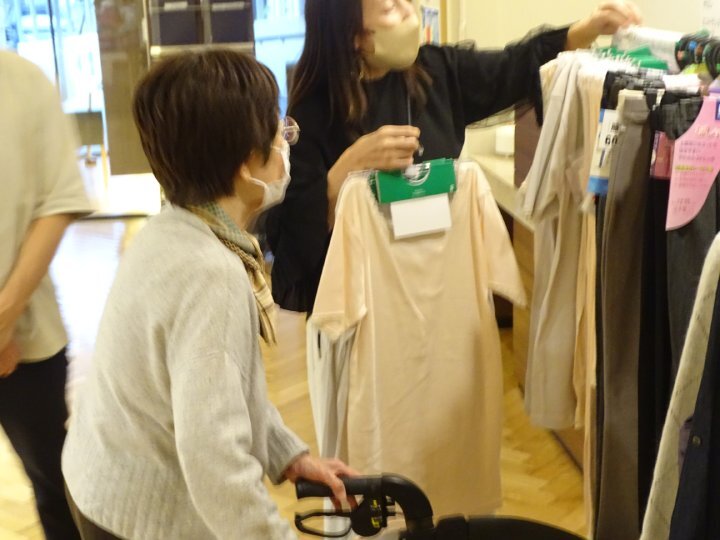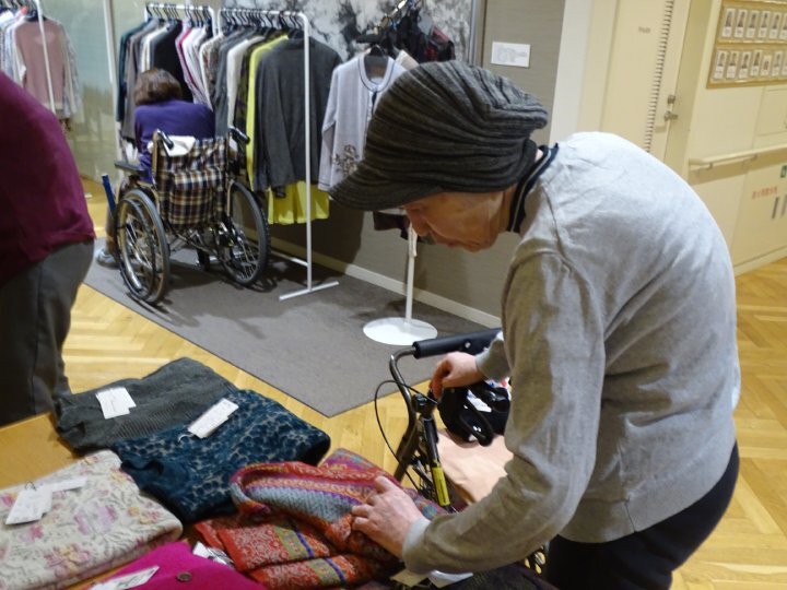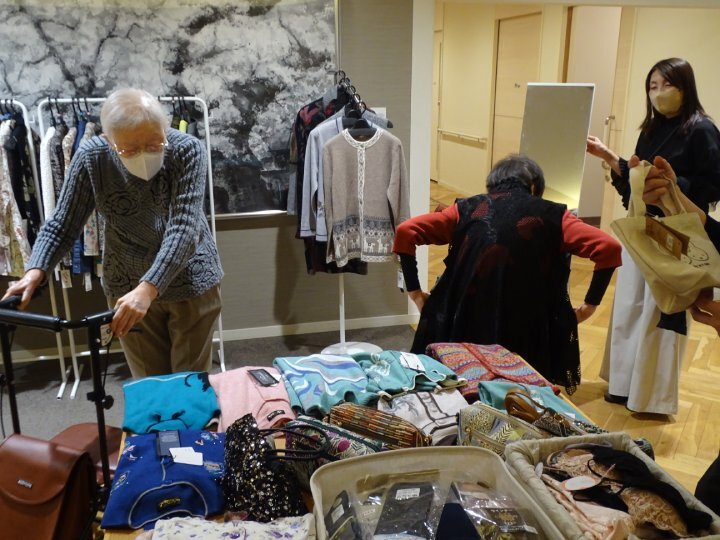 開始と同時に多くのご入居者が足を運ばれ、色合いや素材を確かめながら、思い思いにお洋服選びを楽しまれました。