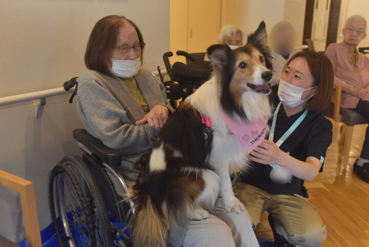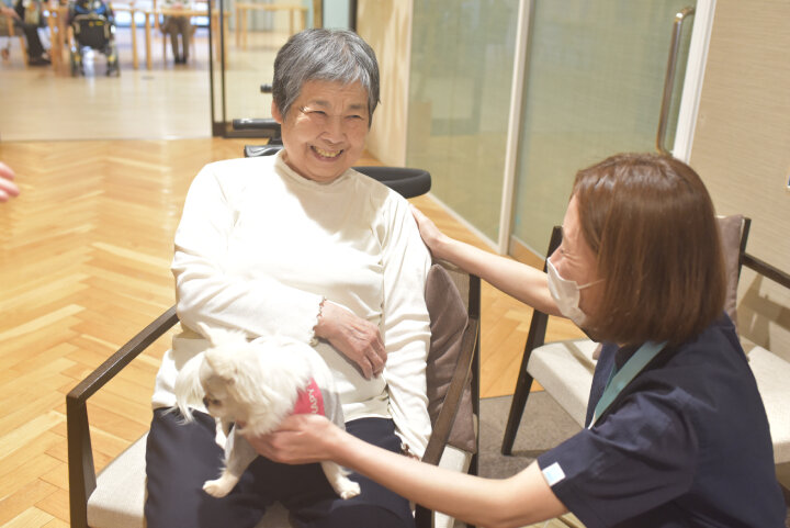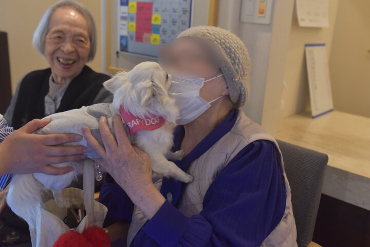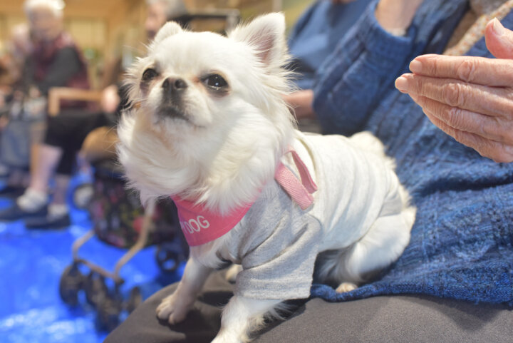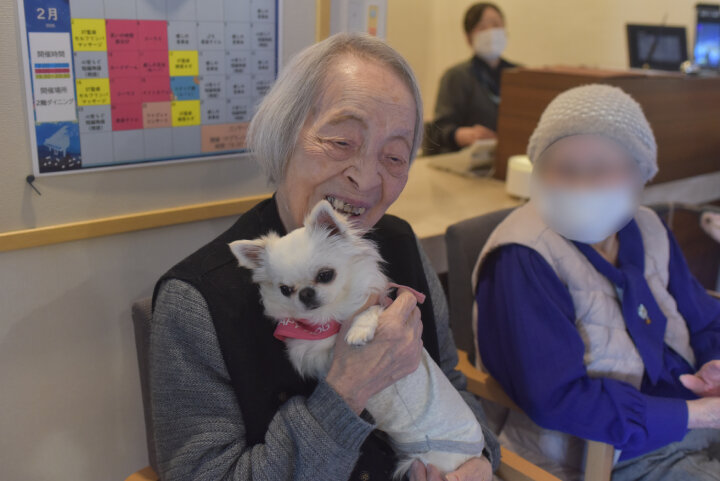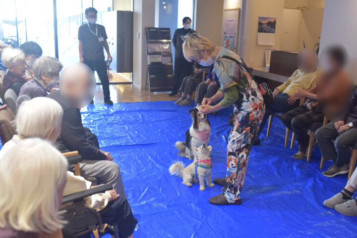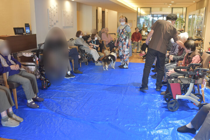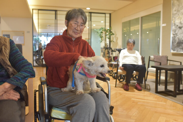中には、ワンちゃんたちの到着時刻よりも早くお越しになり、今か今かと待たれるご入居者もいらっしゃいました。